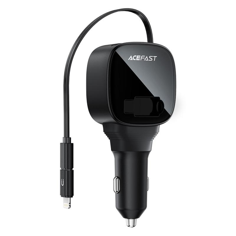 Szybka ładowarka samochodowa Acefast B17 95W - USB-C/USB-A z wyświetlaczem LED i zwijanym kablem