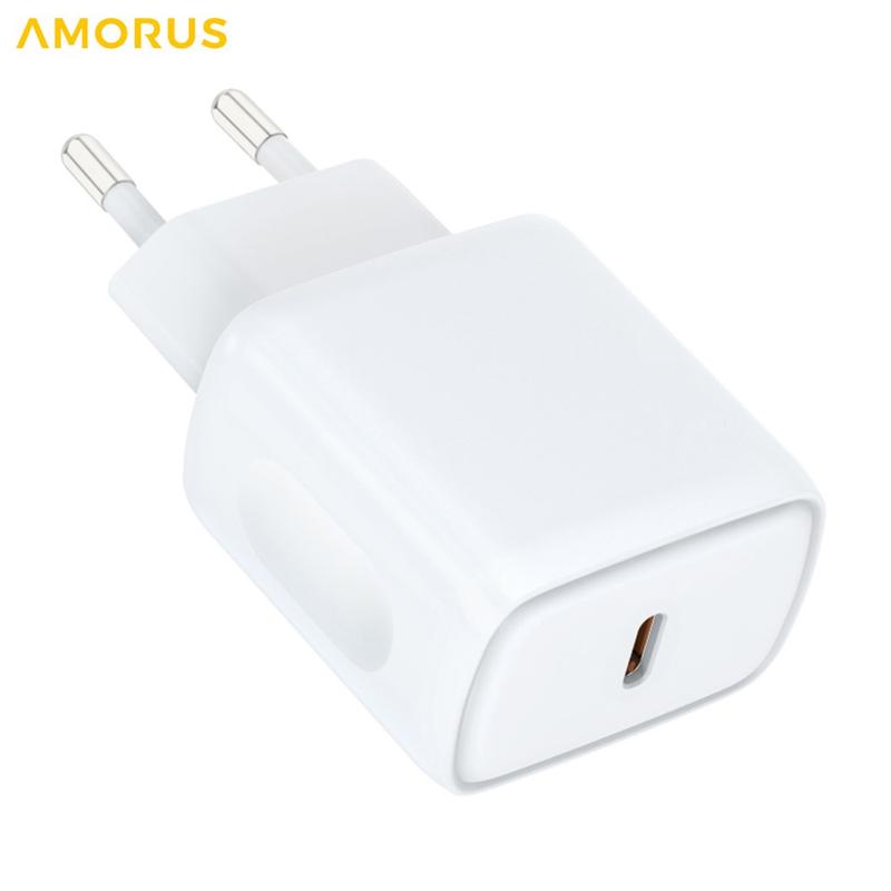 Szybka ładowarka ścienna Amorus PD 20 W USB-C – inteligentny zasilacz z funkcją PPS, ognioodporna konstrukcja – wtyczka UE