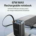 - Moc szybkiego ładowania 67 W - zapewnia szybkie ładowanie za pośrednictwem wbudowanego, zwijanego kabla typu C, zapewniając szybki zastrzyk energii dla smartfonów, tabletów i innych urządzeń zasilanych przez USB.