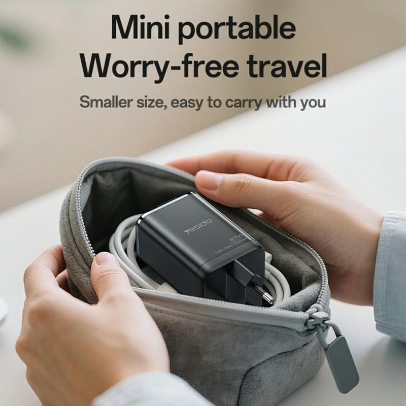 Ładuj inteligentniej i szybciej dzięki ładowarce YESIDO YC100 67W GaN Fast Charger, kompaktowemu i wydajnemu rozwiązaniu zaprojektowanemu z myślą o nowoczesnych urządzeniach. Wyposażona w dwa porty, zaawansowaną technologię azotku galu (GaN) i wbudowany zwijany kabel, łączy w sobie moc, wygodę i bezpieczeństwo - idealna do użytku domowego, biurowego lub w podróży.