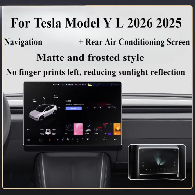 Zestaw 2 hartowanych szklanych osłon ekranu do Tesli Model Y / Model L (2025-2026) - ochrona przed odblaskami dla przedniego wyświetlacza 16" i tylnego wyświetlacza 8"