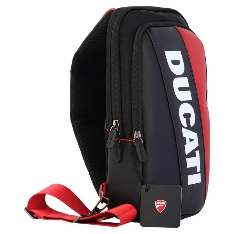 Torba na ramię Ducati Sling - regulowany pasek na ramię, oddychająca siateczkowa tylna część, wiele kieszeni