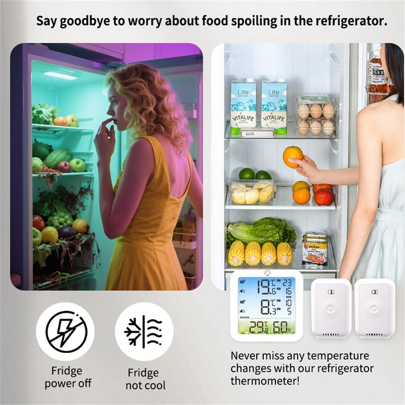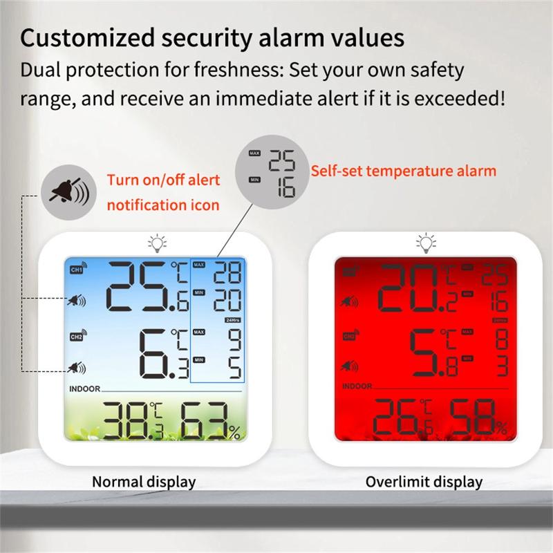 TS-8082 Dwukanałowy bezprzewodowy termometr i higrometr - urządzenie do monitorowania temperatury w lodówce i zamrażarce z 2 czujnikami i alarmem