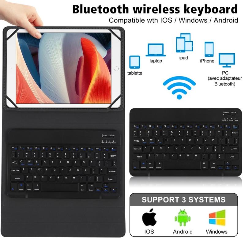 TY3316 Uniwersalne etui na tablet z klawiaturą Bluetooth - 9-11", poliuretanowa podstawka z regulowanym kątem widzenia, elastyczne paski, układ US