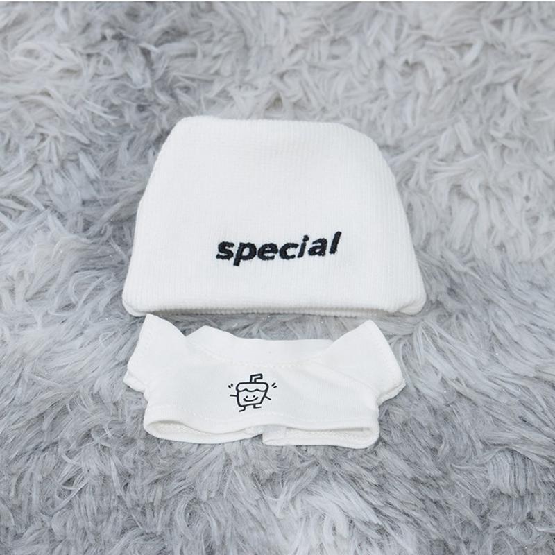 Ubrania w stylu ulicznym dla lalki Labubu 17 cm - dzianinowa czapka i koszulka z grafiką