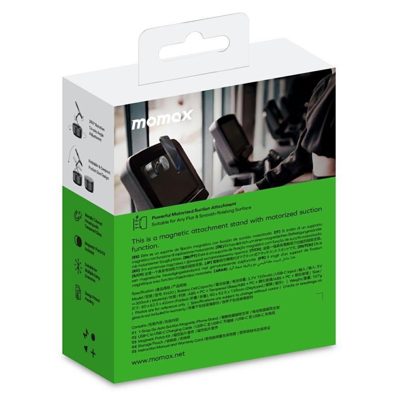 Momax KH20 1-Snap Go Elektryczny magnetyczny uchwyt do telefonu - zmotoryzowany uchwyt z automatycznym przyssawką, składany uchwyt trójosiowy z obrotem o 360°, ładowany przez USB-C