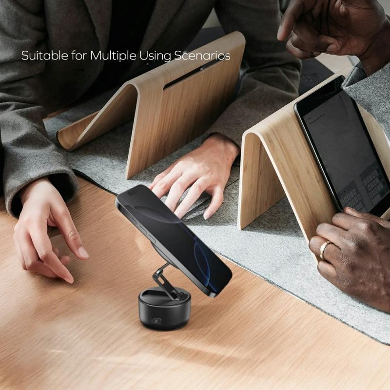Jeśli masz dość uchwytów, które się ślizgają, opadają lub pozostawiają lepkie ślady, model KH20 jest doskonałym rozwiązaniem. Silnikowa przyssawka zapewnia niezawodne mocowanie bez użycia kleju, a magnetyczna konstrukcja zatrzaskowa sprawia, że montaż jest szybki i łatwy. Dodaj do tego trójosiowe pozycjonowanie i składaną konstrukcję, a otrzymasz uchwyt, który dostosowuje się do pracy, podróży, fitnessu i codziennego życia, nie zajmując zbyt wiele miejsca.
