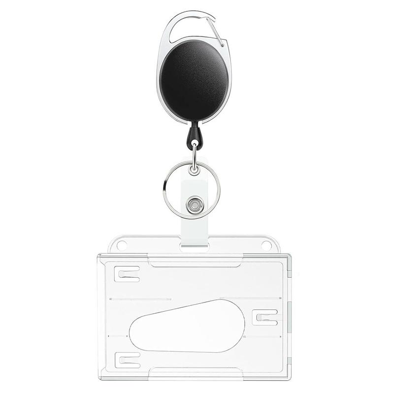 Przypnij, przesuń i kontynuuj swój dzień. To chowane etui na identyfikator łączy w sobie odporną na zarysowania obudowę z poliwęglanu z gładką rolką ze stopu cynku, dzięki czemu dwie karty są bezpieczne, widoczne i gotowe do użycia w każdym punkcie kontrolnym. 60-centymetrowa linka zwija się bezgłośnie, a zintegrowany karabińczyk można błyskawicznie przypiąć do szlufki paska lub paska torby.