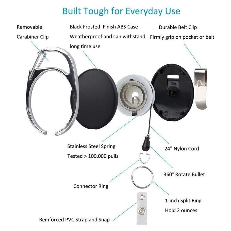 - Wysuwana rolka ze stopu cynku z 60 cm nylonową linką do łatwego skanowania metodą "dotknij i idź
