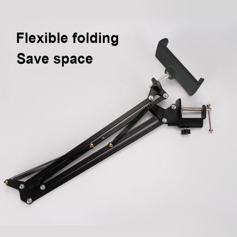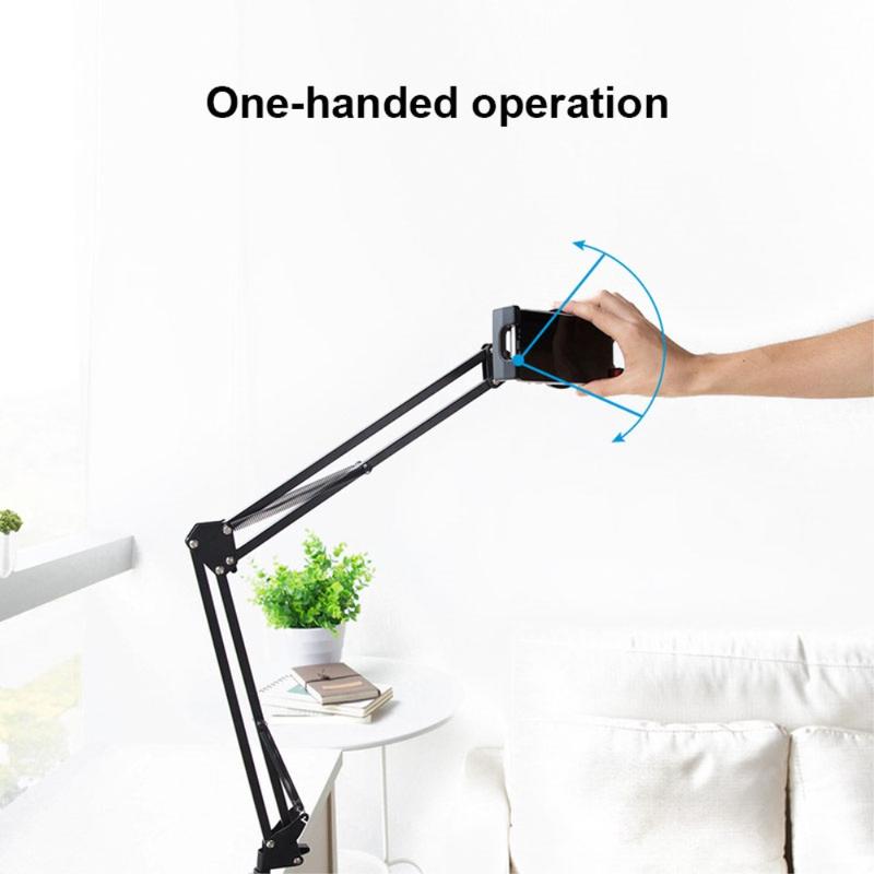 Regulowane długie ramię umożliwia swobodne dostosowanie wysokości, odległości i kąta, dzięki czemu idealnie nadaje się do oglądania filmów, rozmów wideo, czytania lub przeglądania stron internetowych bez użycia rąk.