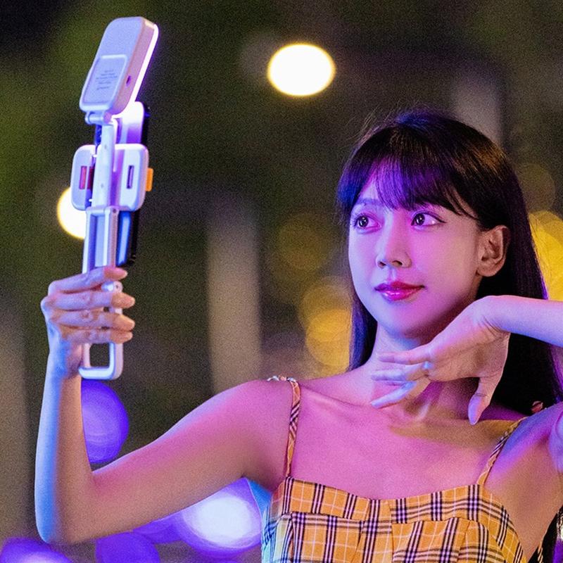 Ręczna lampa wypełniająca Cyke D2 Pro RGB to wszechstronne narzędzie przeznaczone do transmisji na żywo, fotografii i tworzenia wideo. Łącząc światło wypełniające RGB ze zintegrowanym uchwytem na telefon, może być używany jako stabilny statyw biurkowy lub przekształcony w ręczne światło do fotografowania mobilnego.