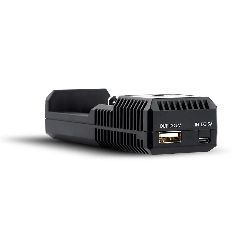 - Funkcja Power Bank - z dowolnym ogniwem litowo-jonowym (np. 18650, 20700, 21700) działa jako przenośny bank energii USB (5V/1A, maks. 1,5A).
