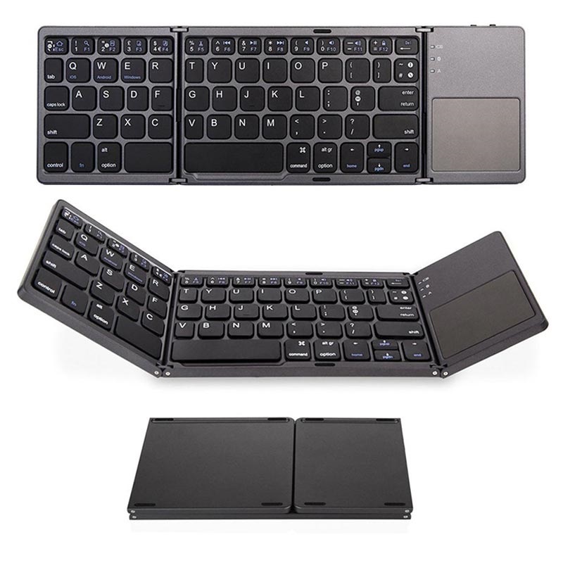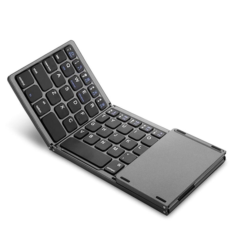 Niewielka i lekka uniwersalna klawiatura Bluetooth z panelem dotykowy może ci zawsze towarzyszyć. Dzięki składanemu designowi jest bardzo kompaktowa i łatwa do przenoszenia. Technologia Bluetooth oznacza, że nie blokuje portów USB ze względu na odbiornik bezprzewodowy. Konfiguracja jest łatwa oraz nie wymaga instalacji ani sterowników. Bardzo cienka, składana klawiatura łatwo mieści się w torbie, a klawisze są przechowywane bezpiecznie wewnątrz składanej konstrukcji.