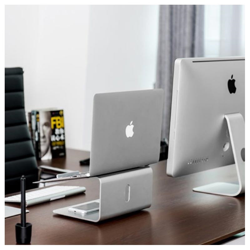 Wygodny design umożliwia ustawianie laptopa w bardziej komfortowej pozycji i sprawia, że idealnie sprawdzi się w każdym biurze. Na spodzie posiada obrotową podkładkę, a specjalne pokrycie gumą zapobiega ślizganiu.