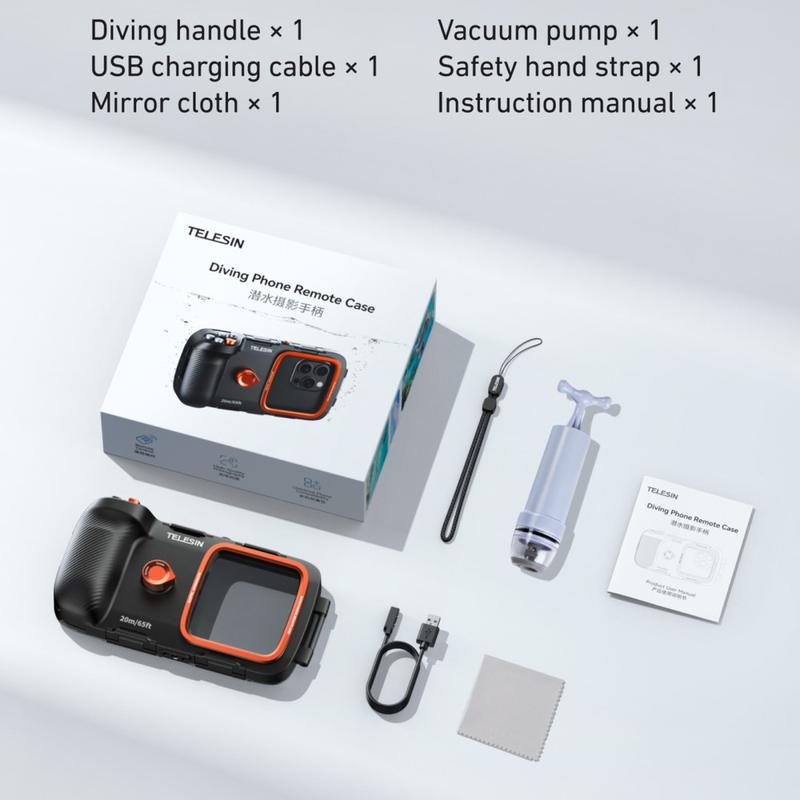 Zaprojektowany do głębokości do 20 metrów, futerał TELESIN zapewnia niezawodną wodoodporność podczas nurkowania, snorkelingu i fotografii podwodnej. Został zaprojektowany tak, aby był odporny na wycieki i chronił urządzenie w ekstremalnych warunkach.