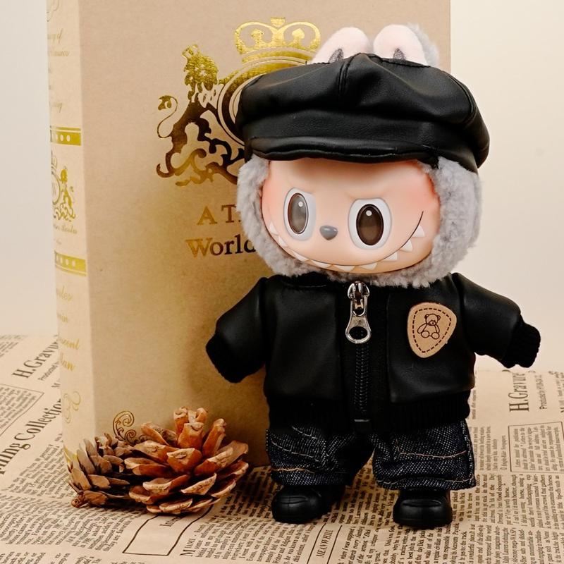 Vintage Aviator Style Outfit Set dla lalki Labubu 17 cm - 5-częściowy wymienny kostium z koszulką, kurtką, dżinsami, czapką i butami dla figurek Gen 1 / 2 / 3
