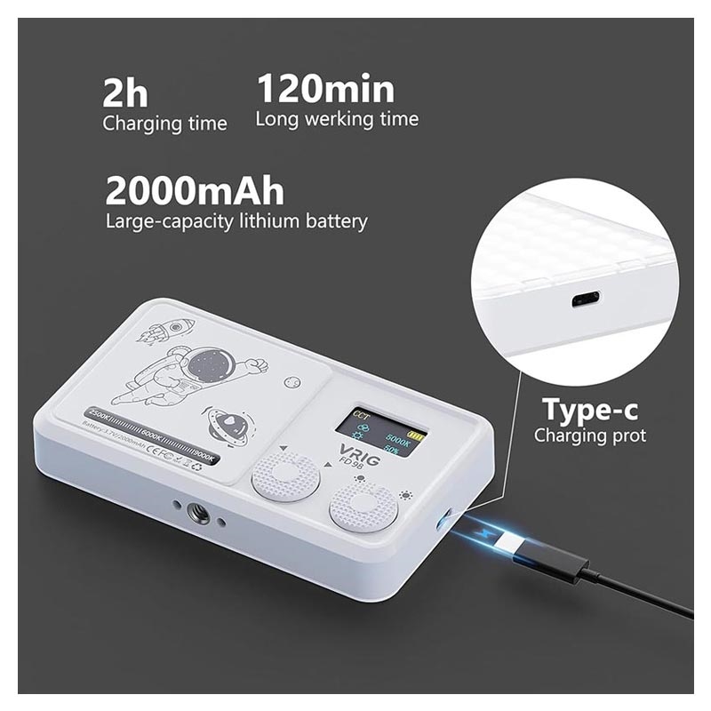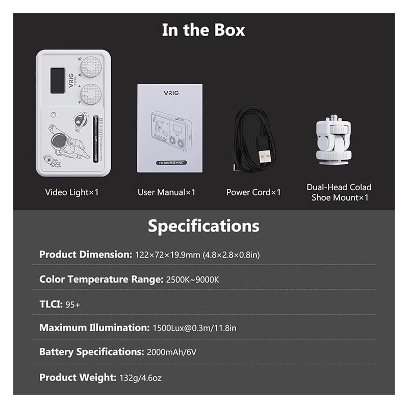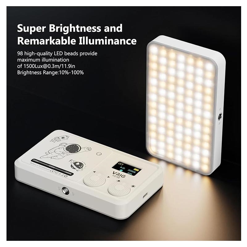 VRIG FD-98 oferuje profesjonalną jakość oświetlenia, pełną kontrolę temperatury barwowej, długą żywotność baterii i przenośność w jednym kompaktowym urządzeniu. Jest to idealne rozwiązanie dla twórców, którzy chcą niezawodnego, wysokiej jakości oświetlenia bez konieczności noszenia ciężkiego sprzętu. Połączenie CRI 95+, wyświetlacza OLED i bezstopniowego sterowania zapewnia kreatywną elastyczność, zwykle spotykaną w znacznie większych lampach.