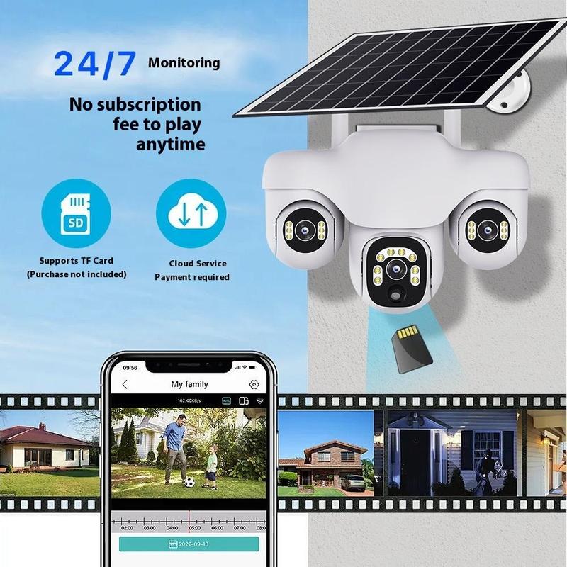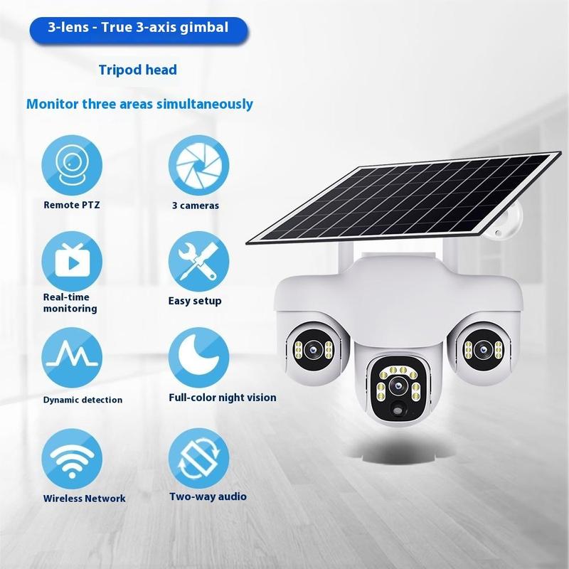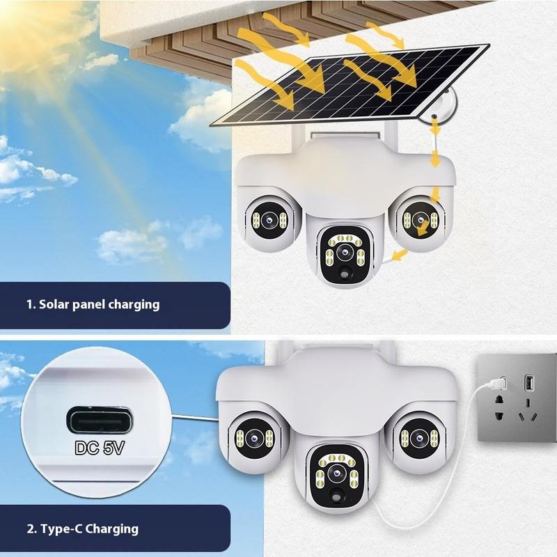 VTS31 V380 - kamera monitoringu PTZ zasilana energią słoneczną z potrójnym obiektywem - zewnętrzna kamera monitoringu WiFi z funkcją wykrywania ruchu