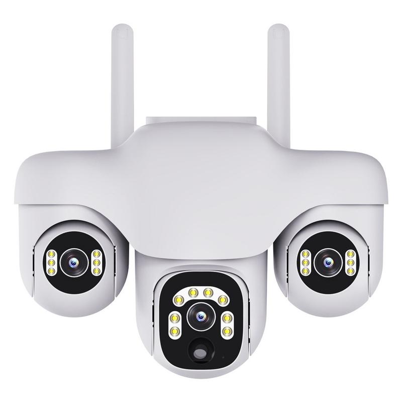 - Konstrukcja z trzema obiektywami o rozdzielczości 2 MP zapewnia szerszy monitoring na zewnątrz i pełniejszy zasięg.