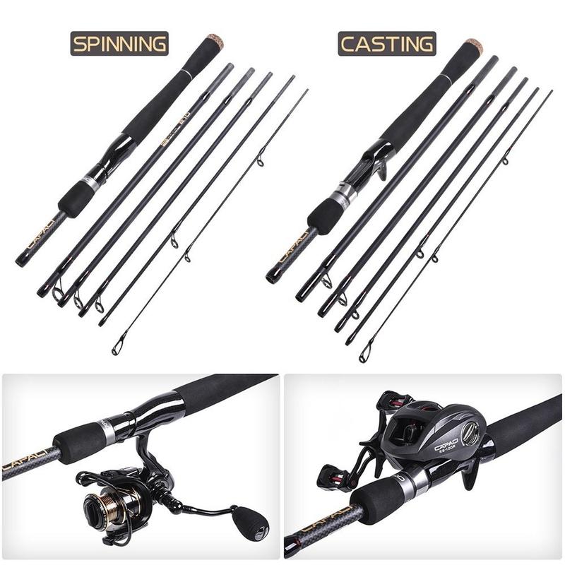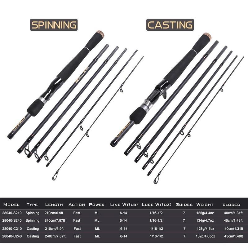 Wędka castingowa Capici z włókna węglowego 2,1 m - 6-sekcyjna lekka tyczka ręczna