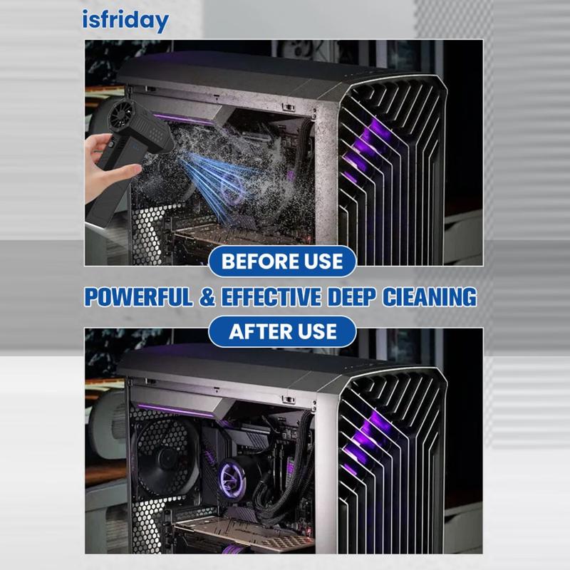Mini-turbina X3 to kompaktowa dmuchawa elektryczna przeznaczona dla użytkowników, którzy oczekują silnego strumienia powietrza, elastycznej przenośności oraz wygodniejszego czyszczenia bez konieczności korzystania z jednorazowych puszek ze sprężonym powietrzem. Dzięki bezszczotkowemu silnikowi o dużej prędkości, trzem poziomom przepływu powietrza i modułowemu systemowi dysz, urządzenie doskonale nadaje się do czyszczenia klawiatur, wnętrz samochodów, biurek, otworów wentylacyjnych i innych trudno dostępnych miejsc. Bezprzewodowa konstrukcja sprawia, że można z niego łatwo korzystać w domu, w biurze, w samochodzie lub w podróży.