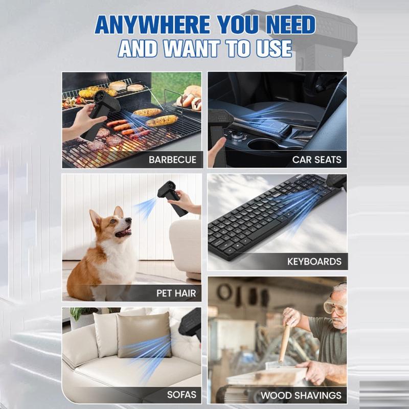 Ten produkt to świetny wybór dla użytkowników, którzy szukają wielokrotnego użytku, przenośnej alternatywy dla jednorazowych sprężarek powietrza. Łączy w sobie silny strumień powietrza z bezprzewodową swobodą, co sprawia, że jest o wiele wygodniejszy do szybkiego sprzątania w miejscach, gdzie kabel mógłby przeszkadzać. Dołączony zestaw dysz sprawia, że jest on bardziej wszechstronny niż podstawowa dmuchawa, ponieważ można go łatwiej dostosować do różnych potrzeb związanych z czyszczeniem.