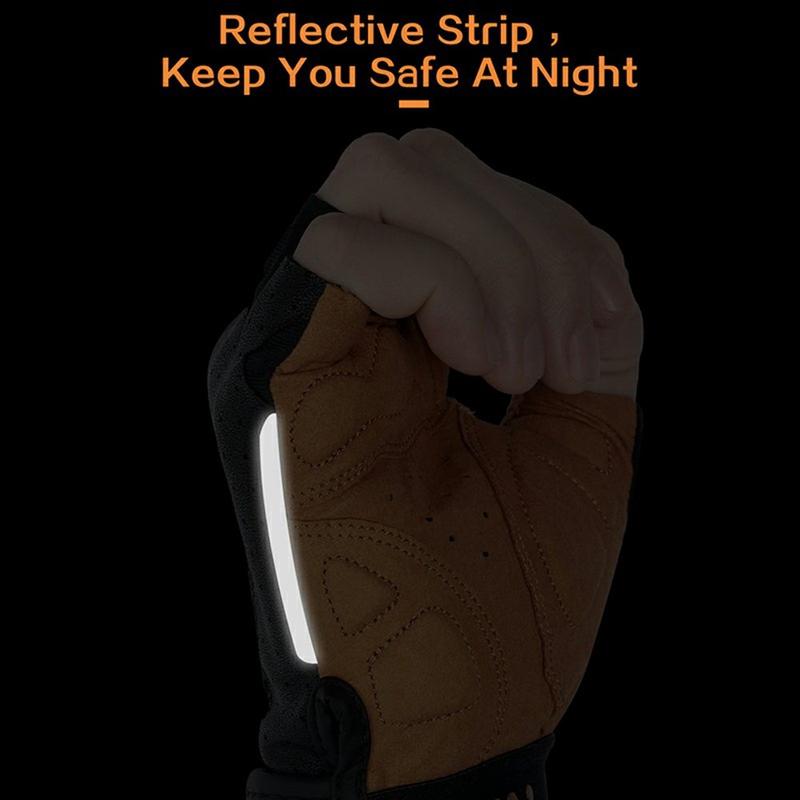 Zaprojektowane z myślą o dobrym samopoczuciu i bezpieczeństwie rowerzysty, rękawice są wyposażone w odprowadzającą pot tkaninę frotte do szybkiego wycierania twarzy lub czoła, a także elementy odblaskowe, które zwiększają widoczność podczas nocnych przejażdżek. Ergonomiczna konstrukcja z połową palców poprawia kontrolę, przyczepność i wentylację, idealna do jazdy długodystansowej, MTB, kolarstwa szosowego i dojazdów do pracy.