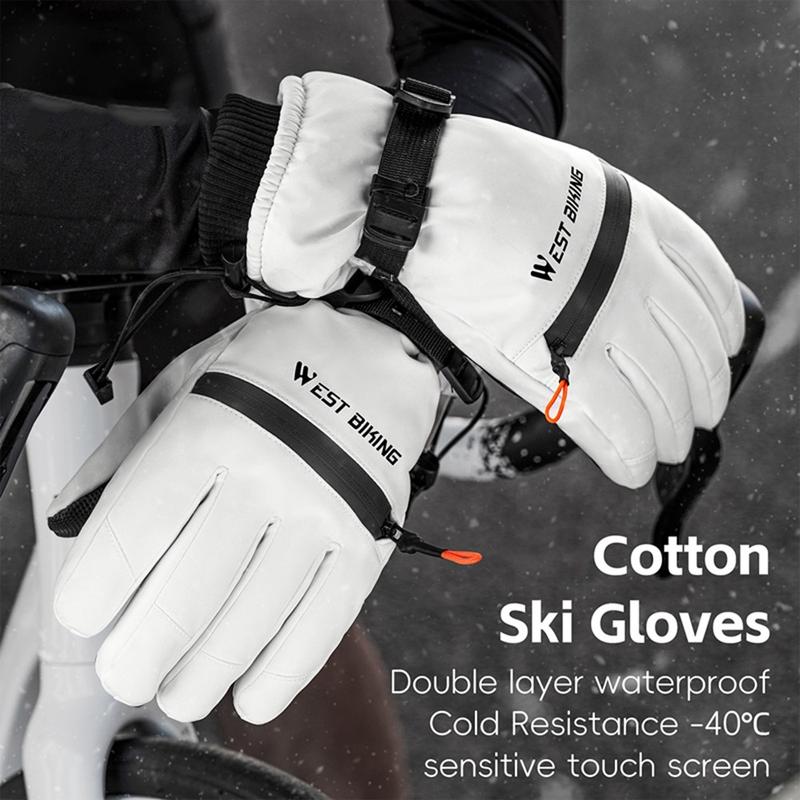 West Biking YP0211271 Wodoodporne rękawice narciarskie - zimowe, wiatroszczelne rękawice rowerowe z ekranem dotykowym i kieszenią na zamek błyskawiczny