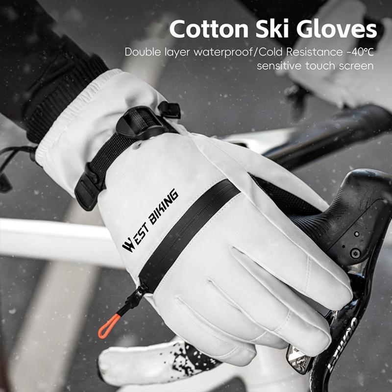 West Biking YP0211271 Wodoodporne rękawice narciarskie - zimowe, wiatroszczelne rękawice rowerowe z ekranem dotykowym i kieszenią na zamek błyskawiczny