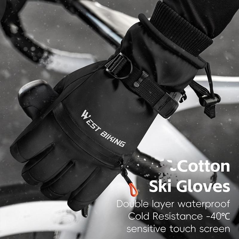 West Biking YP0211271 Wodoodporne rękawice narciarskie - zimowe, wiatroszczelne rękawice rowerowe z ekranem dotykowym i kieszenią na zamek błyskawiczny