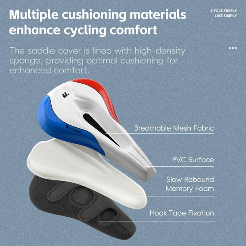 Zwiększ komfort jazdy dzięki pokrowcowi na siodełko rowerowe WEST BIKING YP0801256. Wykonany z miękkiej pianki z pamięcią kształtu i wodoodpornej powierzchni PU, pomaga zmniejszyć nacisk na siodełko i poprawia komfort podczas dłuższych podróży. Ergonomiczny kształt 3D z wydrążoną, oddychającą siateczką wspomaga przepływ powietrza, zmniejszając gromadzenie się ciepła, a duża powierzchnia antypoślizgowa z silikonu zapewnia stabilność pokrowca podczas pedałowania. Wytrzymała struktura tkaniny Oxford zapewnia dodatkową odporność na zużycie, dzięki czemu jest to praktyczne ulepszenie dla rowerów szosowych i wielu innych typów rowerów.