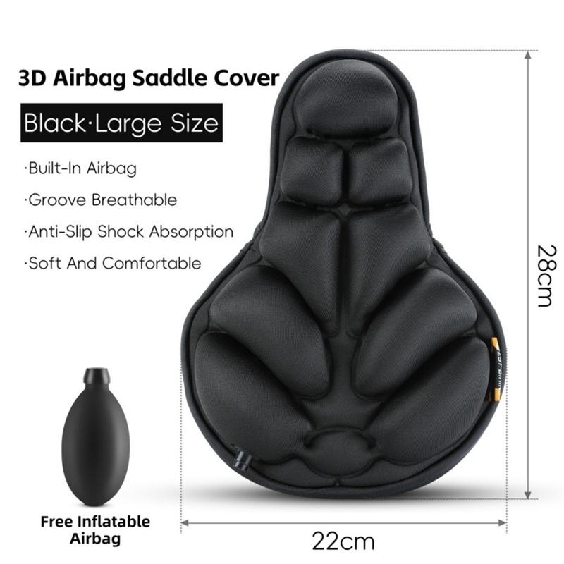 West Biking YP0801260 Nadmuchiwana poduszka powietrzna 3D na siodełko rowerowe - regulowana, amortyzująca wstrząsy podkładka z wentylacją (28 cm x 22 cm)