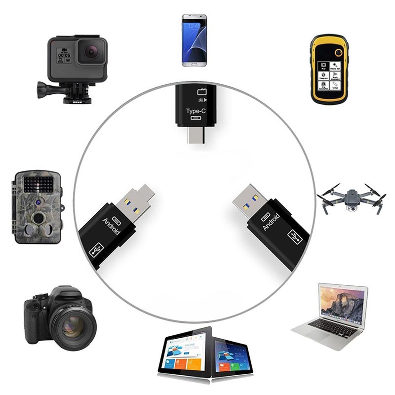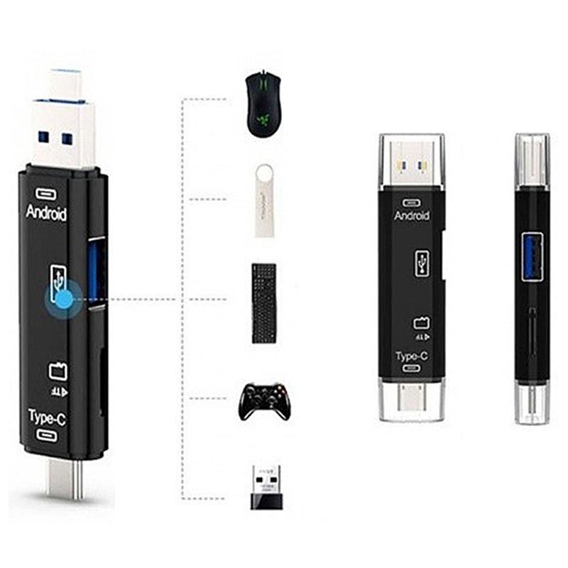 Wielofunkcyjny szybki adapter OTG USB 3.0 i czytnik kart pamięci MicroSD 3-w-1 - USB-C, Micro USB, USB 2.0