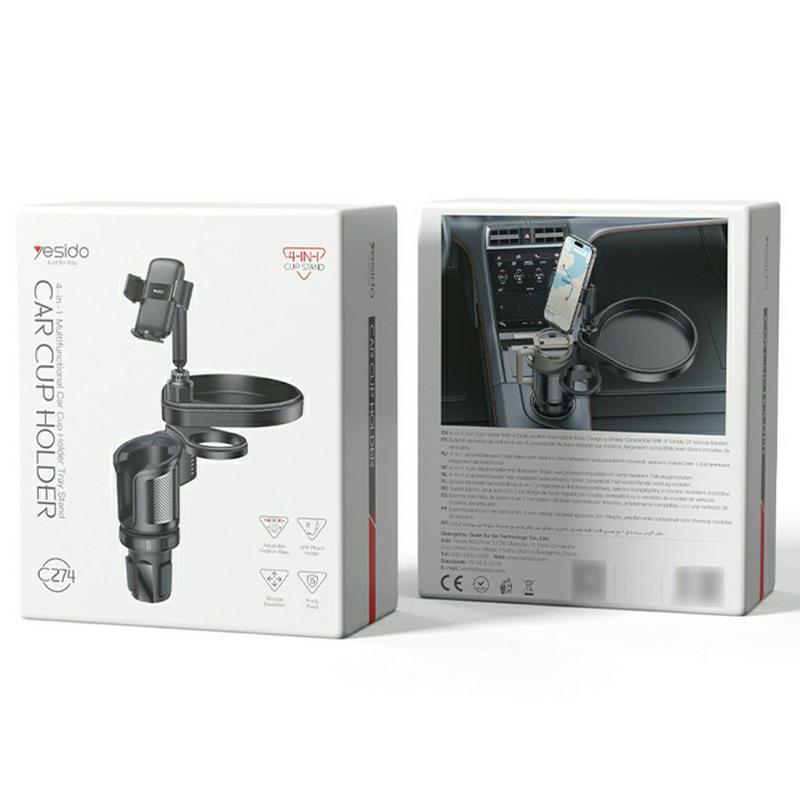 Wielofunkcyjny uchwyt samochodowy Yesido C274 4 w 1 - tacka na żywność, rozkładany stojak na napoje i regulowany uchwyt na telefon