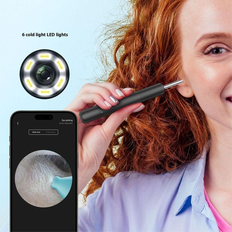 Wizualny czyścik do uszu wifi z endoskopem LED i akcesoriami oferuje inteligentny i bezpieczny sposób czyszczenia uszu za pomocą wizualnych wskazówek w czasie rzeczywistym. Dzięki kamerze endoskopowej o wysokiej rozdzielczości, wbudowanemu oświetleniu LED i bezprzewodowemu połączeniu 2.4G można wyraźnie zobaczyć kanał słuchowy na smartfonie w celu precyzyjnego, kontrolowanego czyszczenia. Łyżka do uszu ze stali nierdzewnej z miękką silikonową końcówką zapewnia wygodne użytkowanie, a zintegrowany wieloosiowy żyroskop utrzymuje stabilny obraz podczas ruchu.