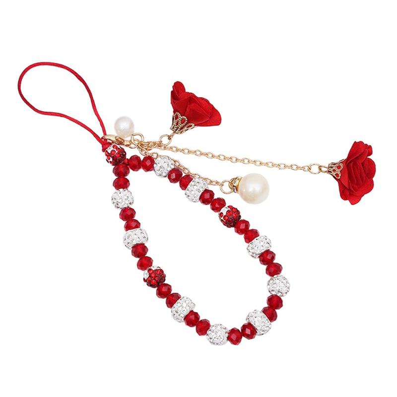 Smycz do telefonu z kryształowymi koralikami o długości 18,7 cm z zawieszkami w kształcie róż - akcesorium do telefonu komórkowego w postaci łańcuszka na nadgarstek