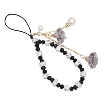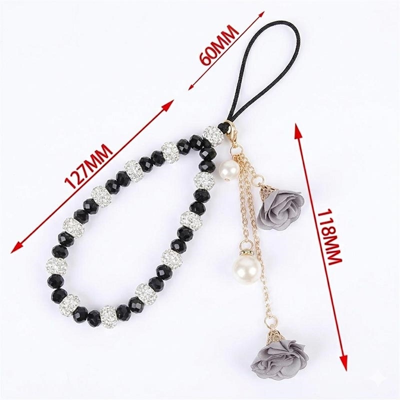Smycz do telefonu z kryształowymi koralikami o długości 18,7 cm z zawieszkami w kształcie róż - akcesorium do telefonu komórkowego w postaci łańcuszka na nadgarstek