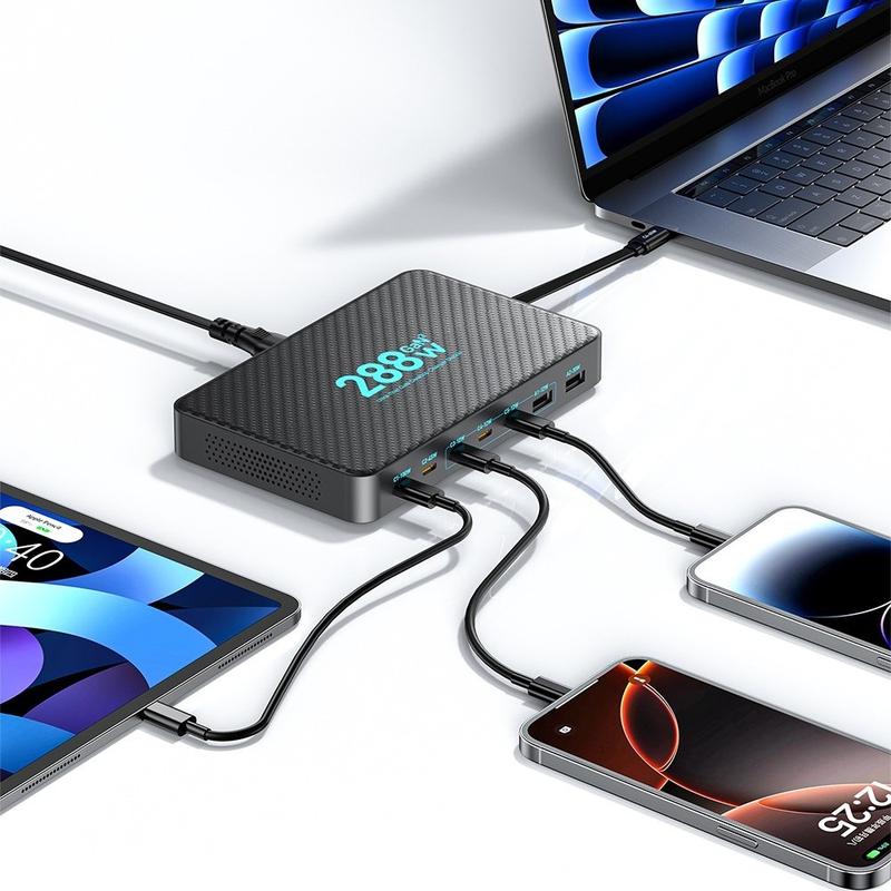Ładowarki GaN wykorzystują elementy z azotku galu, które mogą przełączać zasilanie bardziej efektywnie niż tradycyjne konstrukcje krzemowe, pomagając dostarczać większą moc w mniejszych obudowach. Wieloportowe stacje GaN są popularne, ponieważ zmniejszają plątaninę kabli, centralizując ładowanie i minimalizując liczbę potrzebnych wtyczek ściennych. Chowane kable pomagają również zmniejszyć zużycie kabli i utrzymać porządek w miejscu pracy.
