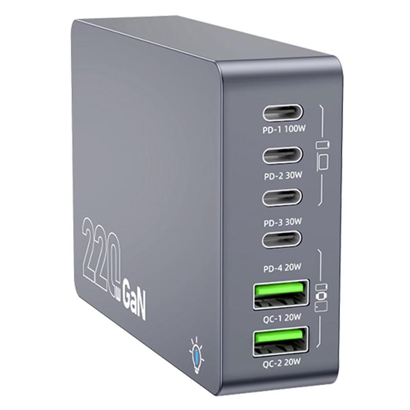 WLX-F8A 220W GaN Stacja ładowania na biurko - 6-portowy adapter szybkiego ładowania - wtyczka EU, 4x USB-C, 2x USB-A
