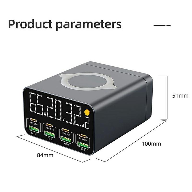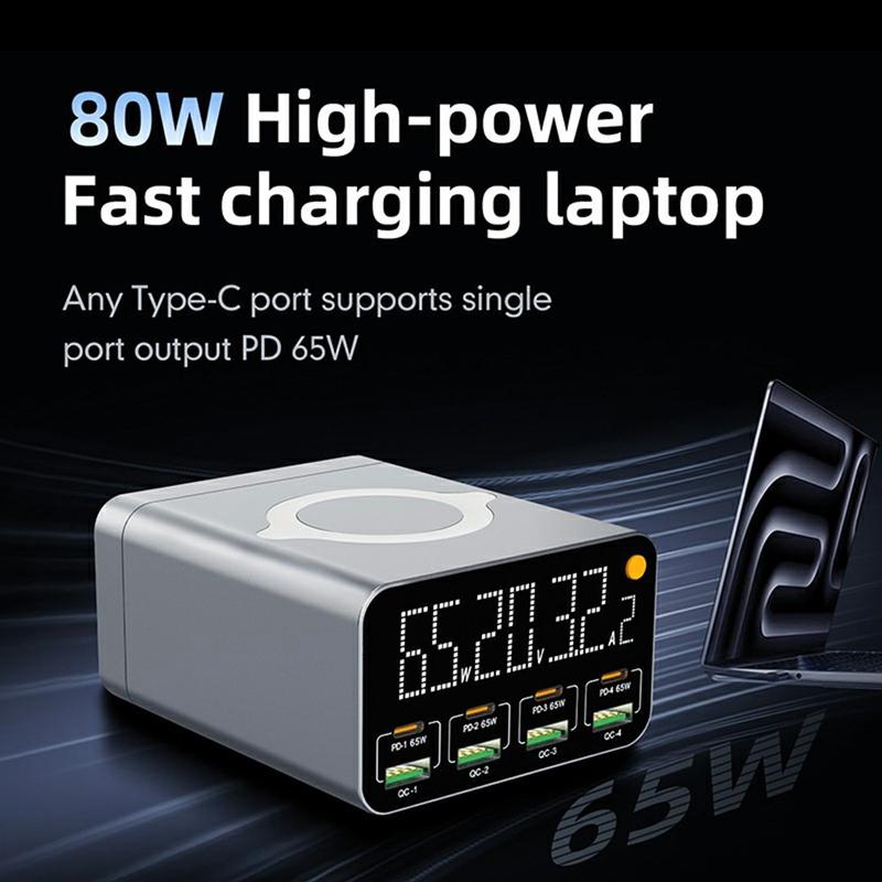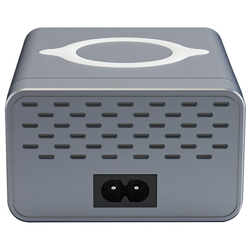 Stacja ładująca WLX-M3 80W 9-w-1 GaN - wieloportowa szybka ładowarka USB-C/USB z funkcją ładowania bezprzewodowego (wtyczka UE)