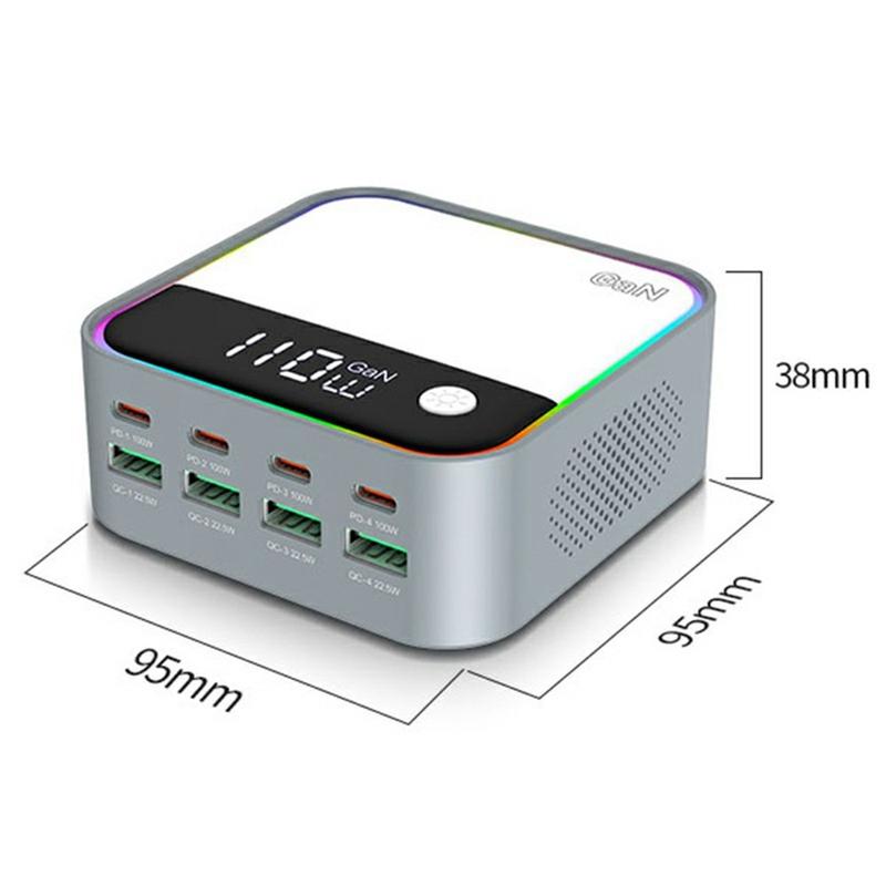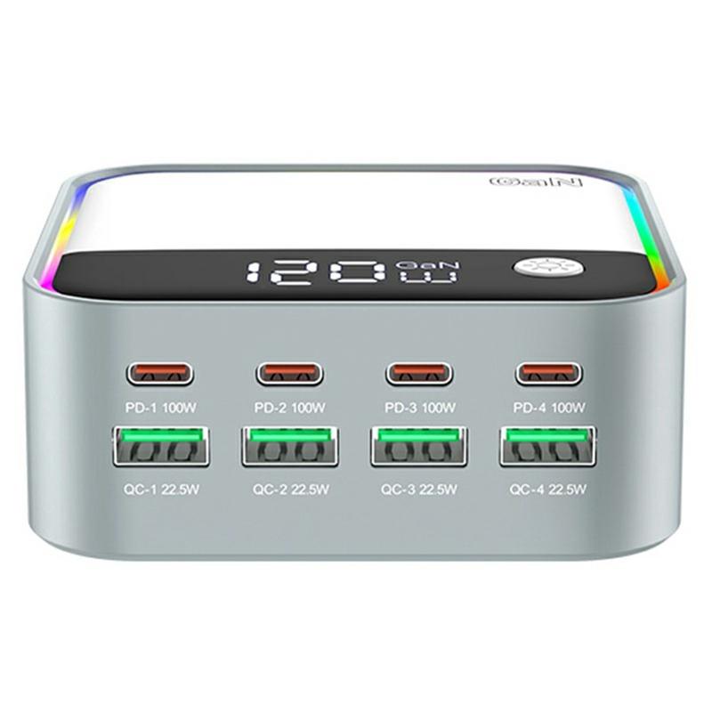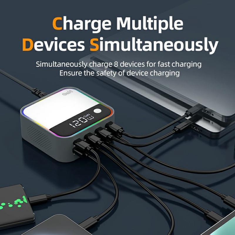 Stacja ładująca WLX-M8 120W z oświetleniem RGB - 8-portowa szybka ładowarka GaN z 4 portami USB-C, 4 portami USB-A i wtyczką EU