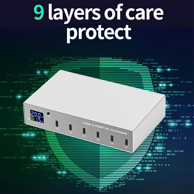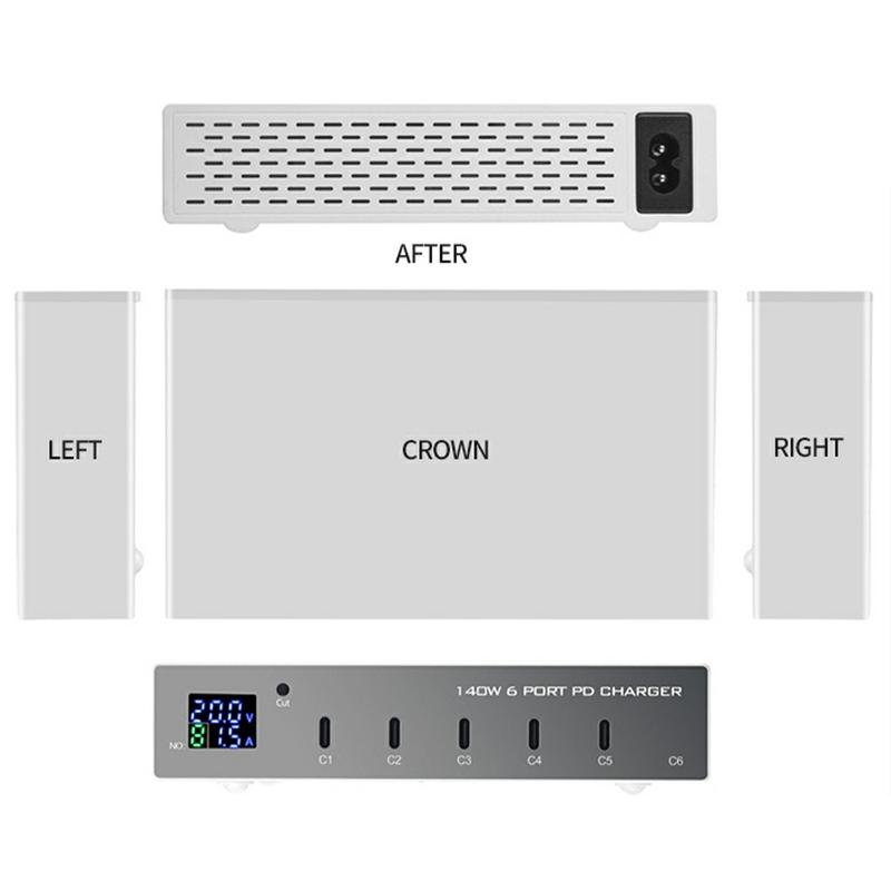 Stacja ładująca WLX-X6P 140W - 6-portowa szybka ładowarka GaN USB-C do laptopów, smartfonów i tabletów (wtyczka EU)