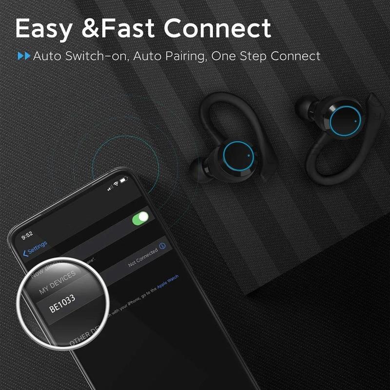 Słuchawki sportowe Bluetooth BE1033 - bezprzewodowy zestaw słuchawkowy o stopniu wodoodporności IPX7 z etui ładującym i sterowaniem dotykowym