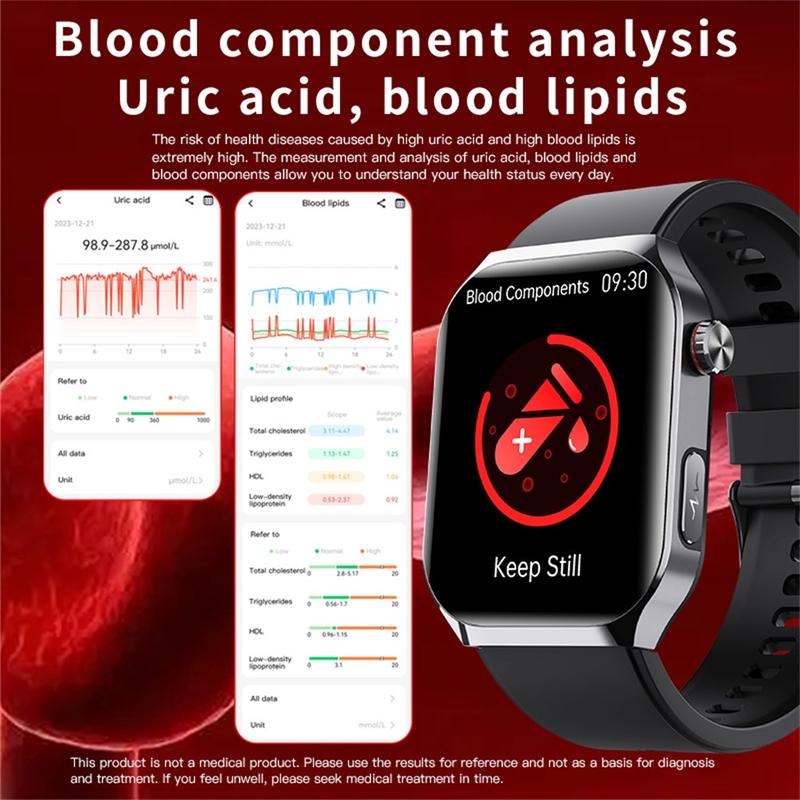 - Kompleksowe monitorowanie stanu zdrowia - EKG, raport HRV, skład ciała, tlen we krwi w czerwonym świetle i nieinwazyjna ocena poziomu cukru we krwi.