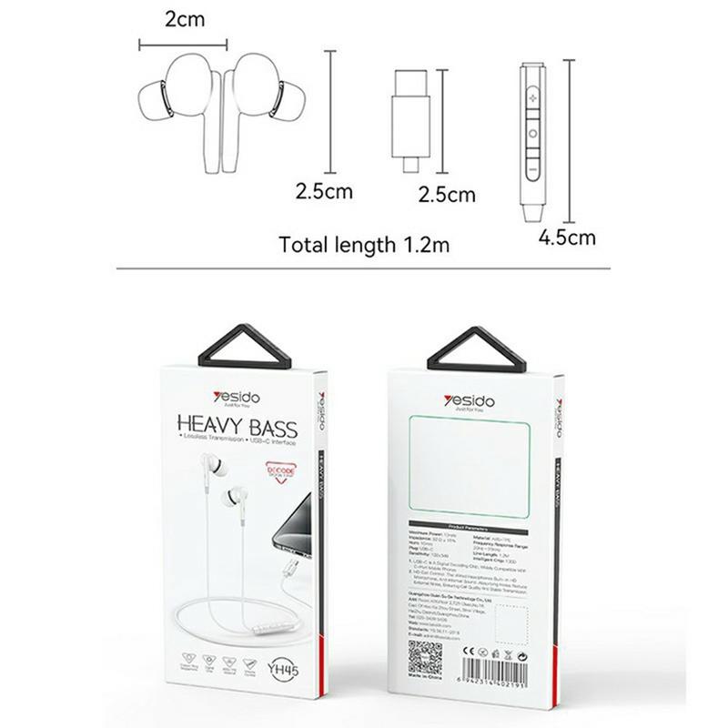 Słuchawki Yesido YH45 USB-C z układem DAC - przewodowe słuchawki douszne z mikrofonem i elementami sterującymi, przetwornik 10 mm