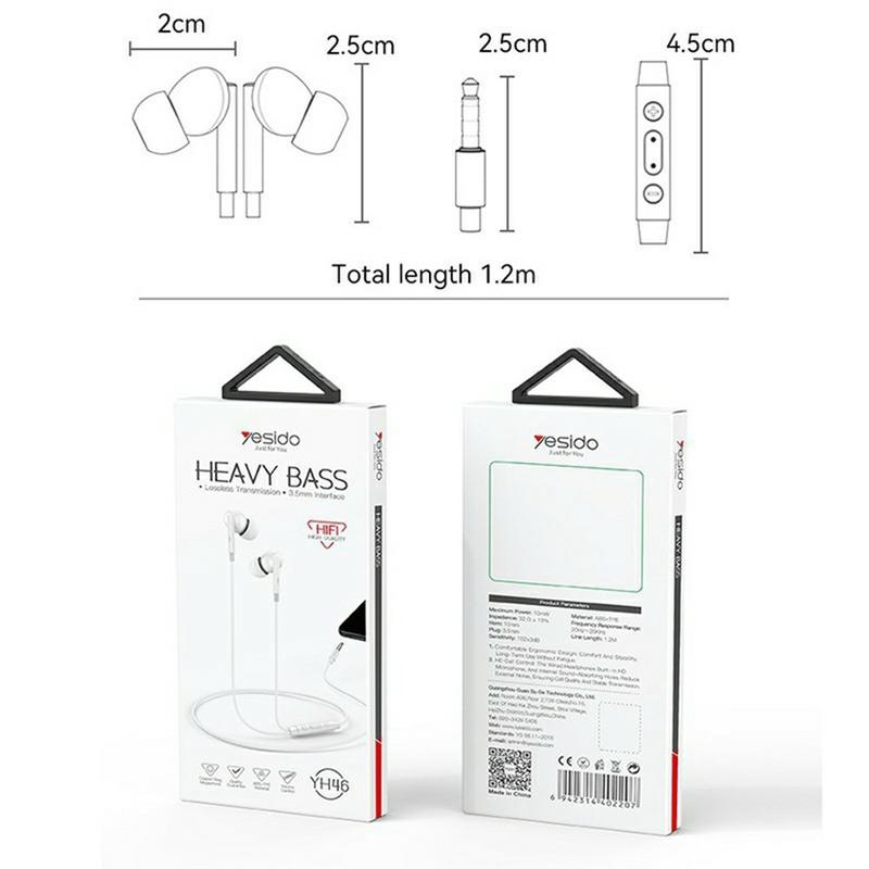 Słuchawki przewodowe Yesido YH46 3.5mm - słuchawki douszne z mikrofonem HD, przetwornikiem 10 mm i jednym przyciskiem sterującym