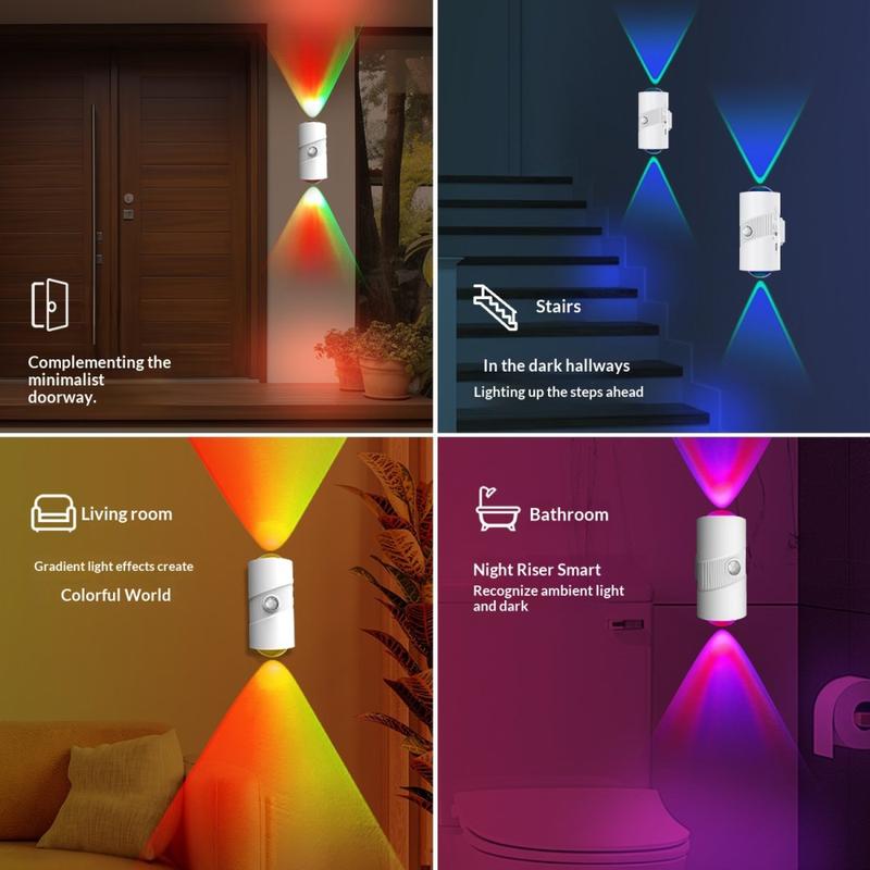 YSJ-008A Inteligentna lampka nocna RGB z czujnikiem ruchu - magnetyczna, ładowalna lampka ścienna z 4 poziomami jasności