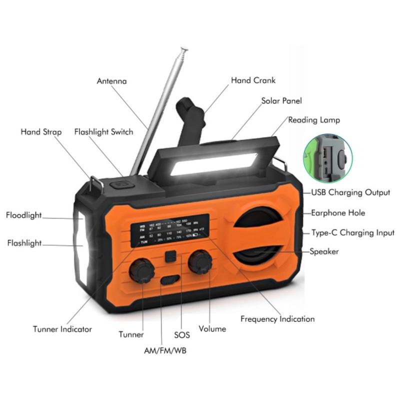 Bądź przygotowany na przerwy w dostawie prądu, wycieczki campingowe i sytuacje awaryjne na świeżym powietrzu dzięki awaryjnej latarce z radioodbiornikiem i ręczną korbką YX328. To wielofunkcyjne urządzenie survivalowe łączy w sobie ładowarkę zasilaną energią słoneczną, ręczny generator z korbką, radio FM/AM/WB, latarkę LED i power bank o pojemności 4000mAh w jednym kompaktowym narzędziu. Niezależnie od tego, czy przebywasz na świeżym powietrzu, czy masz do czynienia z awarią zasilania, pomaga ono pozostać na bieżąco, zapewnia oświetlenie i łączność.