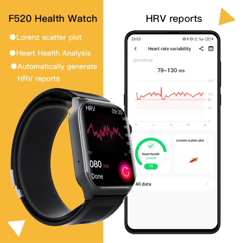 Inteligentny zegarek F520 Air Pump został zaprojektowany w celu zapewnienia kompletnego ekosystemu monitorowania zdrowia w czasie rzeczywistym przy użyciu profesjonalnej technologii. Wyposażony w piezoelektryczną mikrodmuchawę Murata, obsługuje oscylometryczny pomiar ciśnienia krwi do 400 mmHg. W połączeniu z modułem EKG klasy medycznej, oceną ryzyka sercowego, wykrywaniem SpO₂ w czerwonym świetle, wglądem w kortyzol i dynamicznym monitorowaniem tętna 24/7, ten smartwatch pomaga zrozumieć swoje ciało z laboratoryjną precyzją.