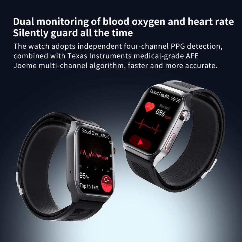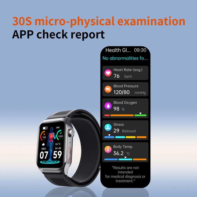 Inteligentny zegarek F520 Air Pump został zaprojektowany w celu zapewnienia kompletnego ekosystemu monitorowania zdrowia w czasie rzeczywistym przy użyciu profesjonalnej technologii. Wyposażony w piezoelektryczną mikrodmuchawę Murata, obsługuje oscylometryczny pomiar ciśnienia krwi do 400 mmHg. W połączeniu z modułem EKG klasy medycznej, oceną ryzyka sercowego, wykrywaniem SpO₂ w czerwonym świetle, wglądem w kortyzol i dynamicznym monitorowaniem tętna 24/7, ten smartwatch pomaga zrozumieć swoje ciało z laboratoryjną precyzją.
